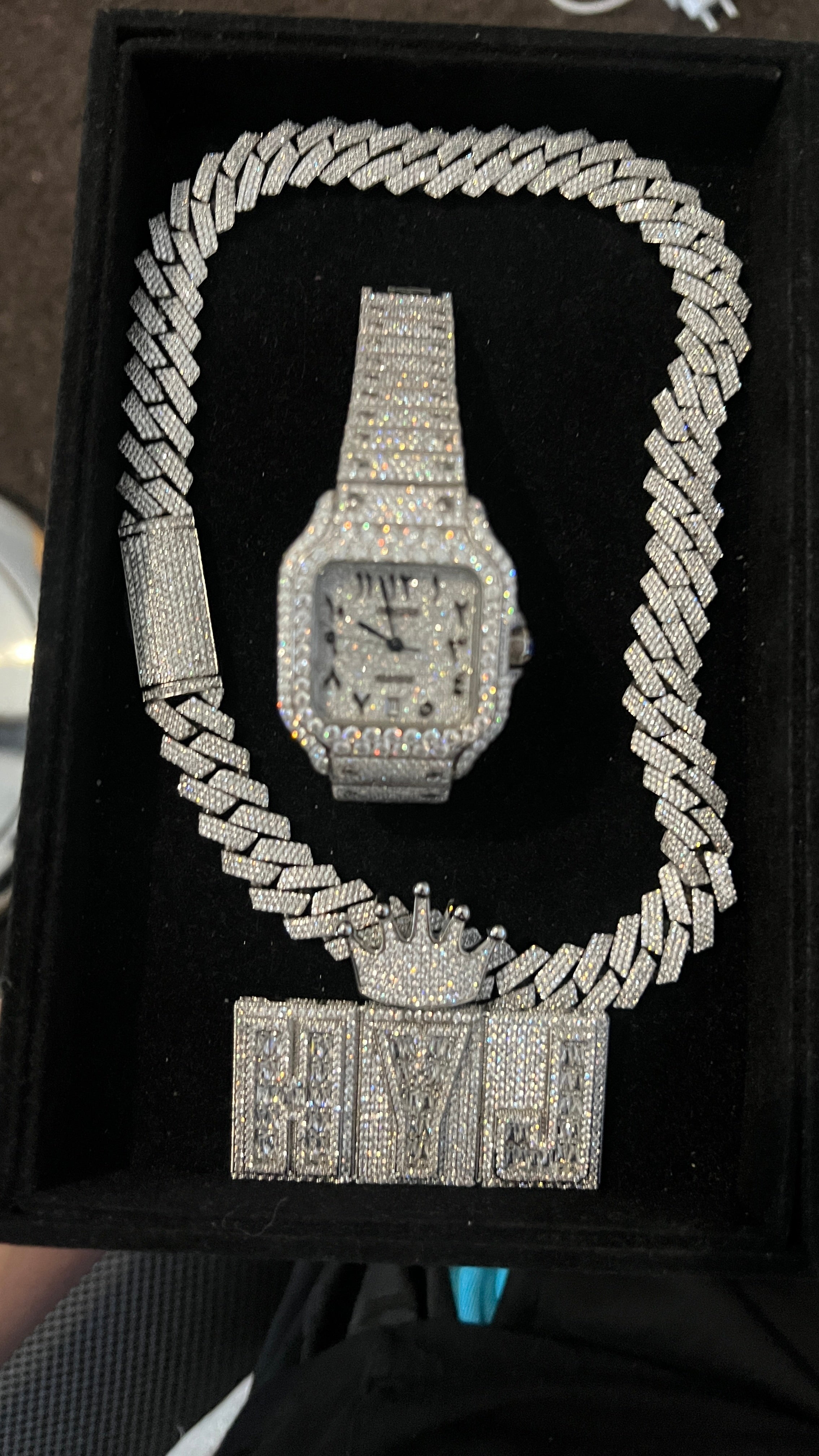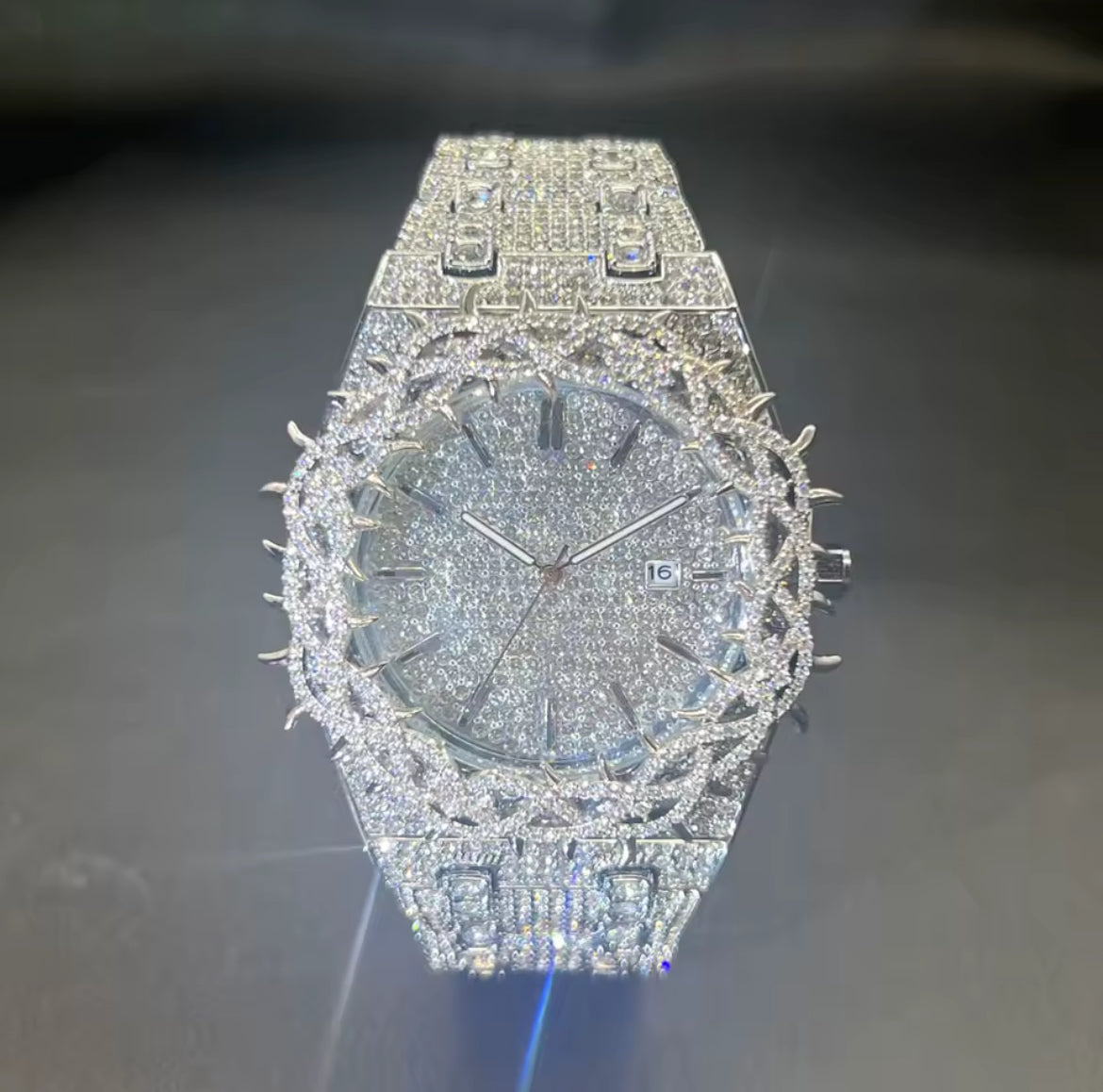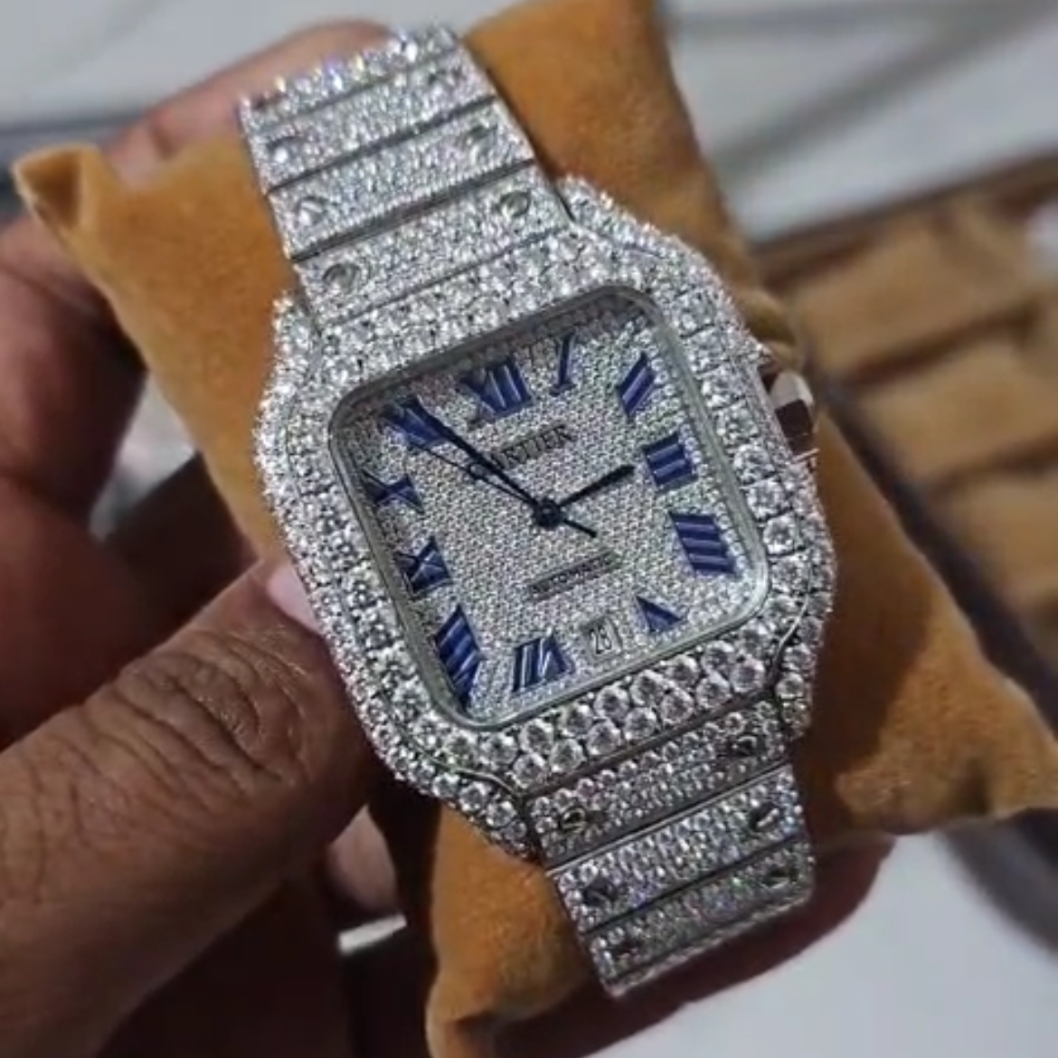 Cartier Santos Large Stainless Steel Watch with Custom Diamonds Pave Blue Roman Numeral Dial