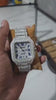 Cartier Santos Large Stainless Steel Watch with Custom Diamonds Pave Blue Roman Numeral Dial